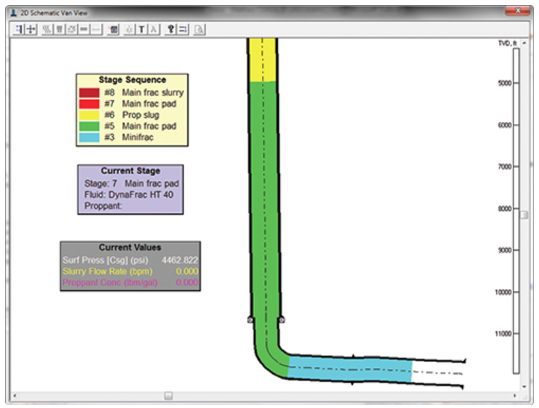 Now you need to visualize that we are all rigged-up on the well and ready to pump. First we will inject into the target zone to get some initial rates and pressures. This gives us an idea of the natural permeability of the reservoir. That may be followed by an acid stage to open up the near well bore rock. Then comes the mini-frac. The mini frac breaks down (fractures) the formation for the first time and the data collected is critical to the final design.