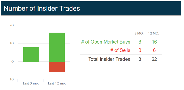 Insiders are buying at current levels. This is usually a good sign that the people run the company think the stock will appreciate in the near term.
