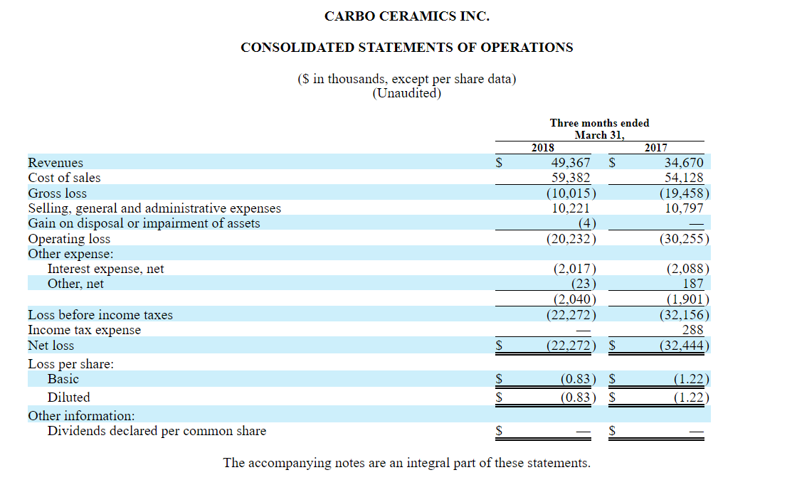 So let's be clear, Carbo is a company with a tattered balance sheet. It invested in the previous boom like the music would never stop. Then the music stopped. There are green shoots though if you can look past the present, although gradually improving mess.