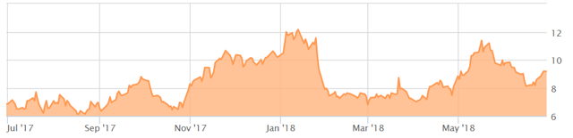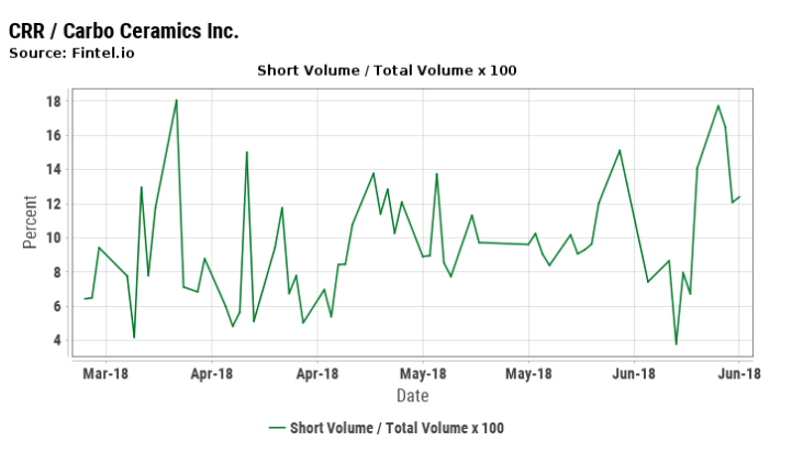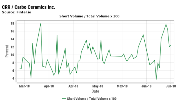 I think Carbo presents an acceptable risk reward profile at current levels. I am long, and will likely increase my position soon. As you can see the stock can be fairly volatile, and has enjoyed a recent run up in late May. In early June this reversed strongly. A chart like this usually means some big holder is shorting and a case can be made for that in the next chart down.